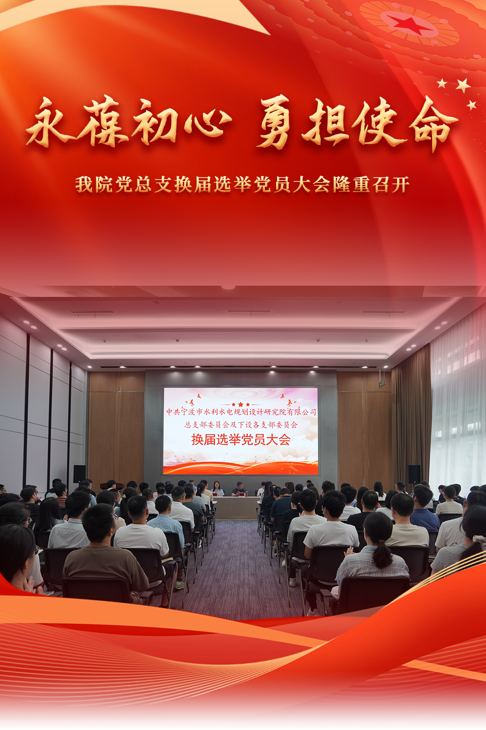 發(fā)布日期:2025.06.24 ? ? ? ? ? ?6月23日下午,中共寧波市水利水電規(guī)劃設(shè)計(jì)研究院有限公司總支部委員會(huì)及下設(shè)各支部委員會(huì)換屆選舉黨員大會(huì)在我院新大樓多功能廳隆重召開。我院黨總... -