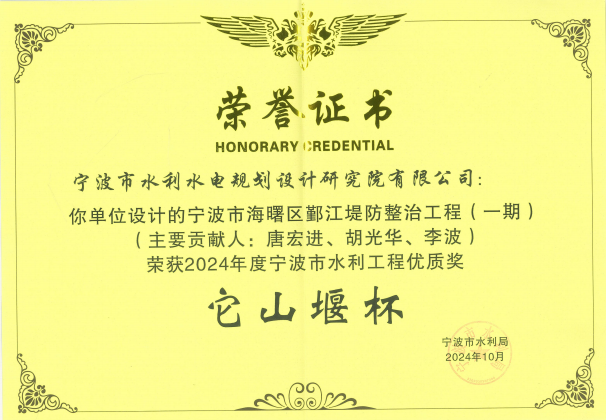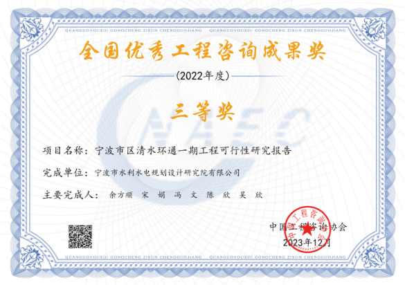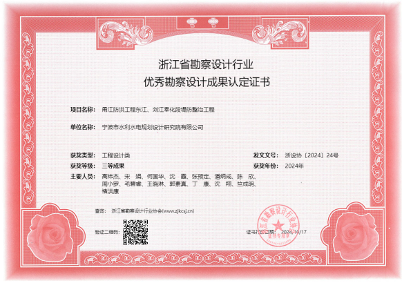 在工程項(xiàng)目方面,獲得2022年度全國優(yōu)秀工程咨詢成果獎(jiǎng)、2024年度寧波市優(yōu)秀勘察設(shè)計(jì)獎(jiǎng)、2024年浙江省勘察設(shè)計(jì)行業(yè)優(yōu)秀勘察設(shè)計(jì)”綜合類成果獎(jiǎng)、寧波市優(yōu)秀水利工程設(shè)計(jì)二等獎(jiǎng)、“浙江省文明標(biāo)化工地”稱號(hào)、“2024年度寧波軌道交通市域鐵路工程立功競(jìng)賽先進(jìn)集體”等各類獎(jiǎng)項(xiàng)十余項(xiàng)。