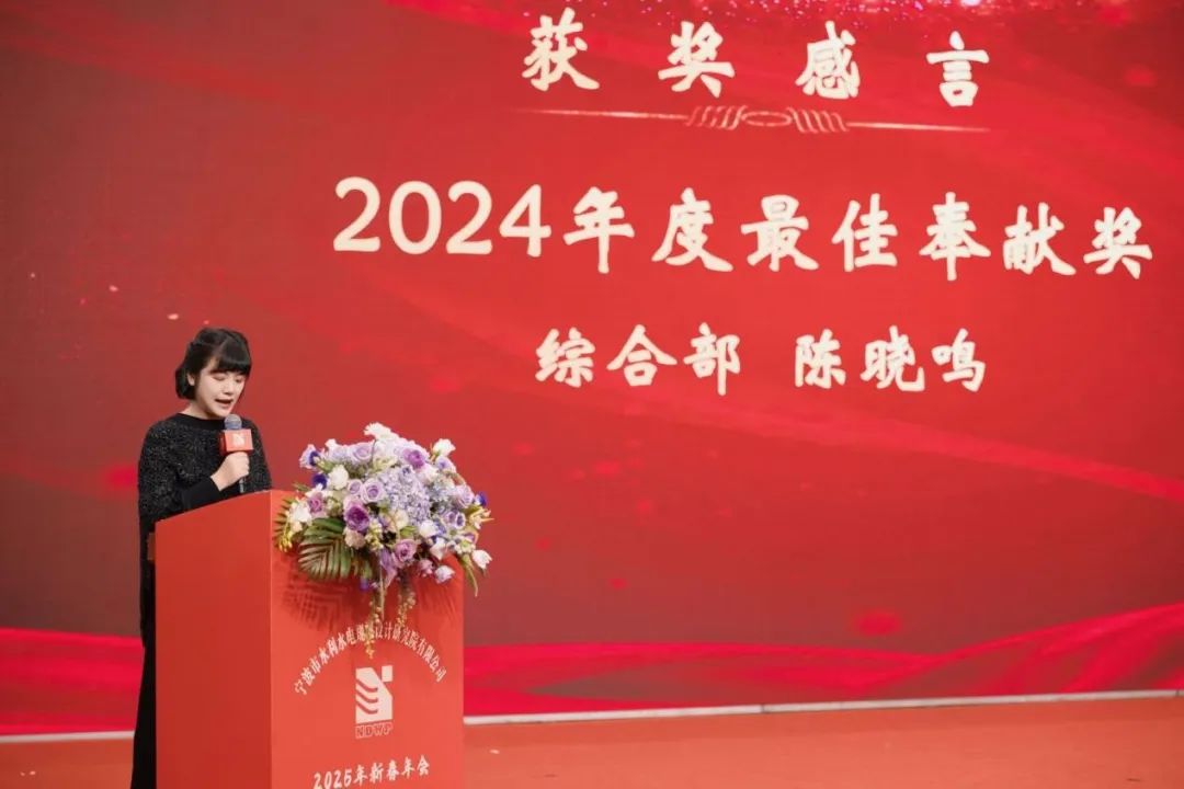 我院董事長、院長嚴文武的致辭為晚會拉開序幕。嚴院長表示,2024年,全院團結一致,協(xié)同發(fā)力,攻堅克難,用一張優(yōu)秀的成績單為我院新征程吹響了號角;2025年,我院新大樓的落成,這是我院發(fā)展的新的里程碑,也是邁向新征程的起點,希望所有員工共享新家園,愛護新家園,繼續(xù)傳承和發(fā)揚寧波院人堅持不懈的優(yōu)良傳統(tǒng),再創(chuàng)佳績!最后,嚴院長對所有員工的辛勤付出表示感謝,致以祝福,祝愿寧波院在2025年乘風破浪,再創(chuàng)輝煌!