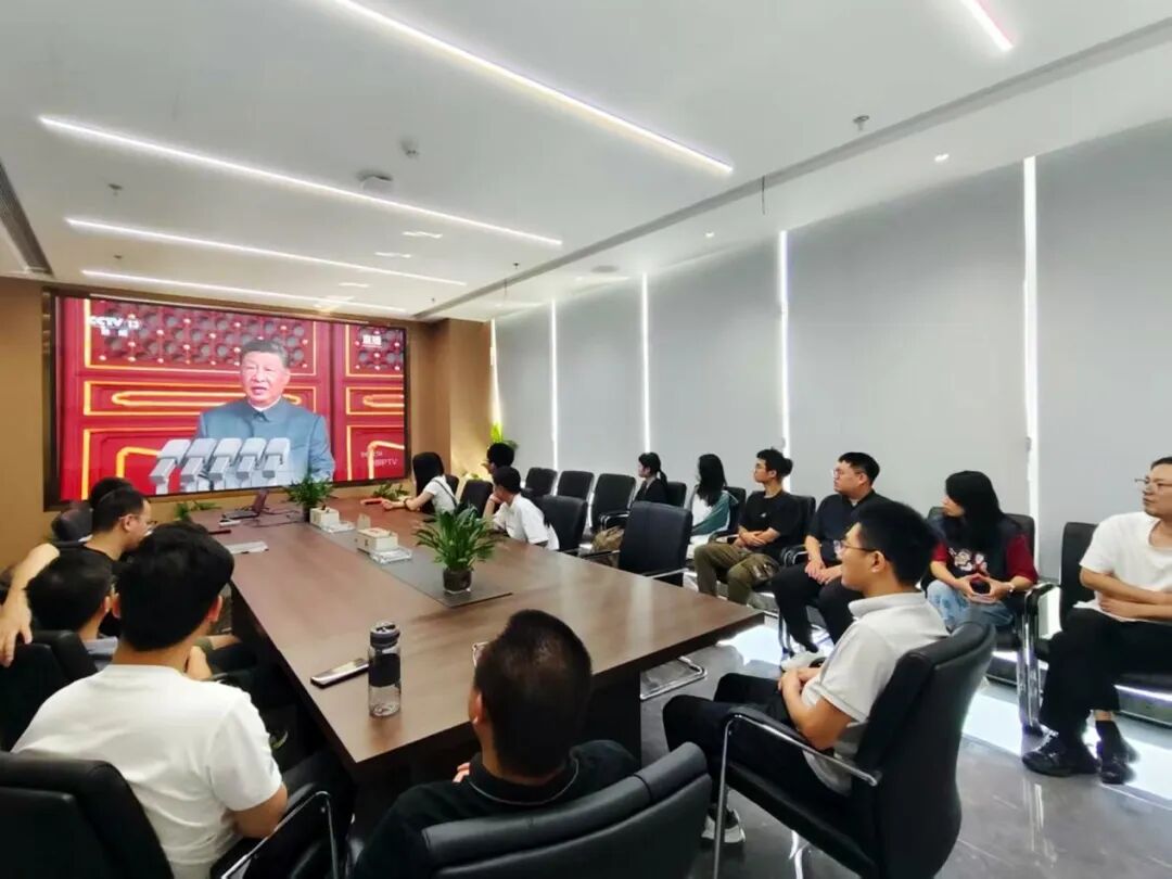 新大樓各層會議室現(xiàn)場氣氛莊重,全體黨員及職工認(rèn)真聆聽習(xí)近平主席重要講話。當(dāng)閱兵儀式開始時,大家不時為受閱部隊的雄壯陣容和先進(jìn)裝備贊嘆鼓掌,由衷為祖國日益強(qiáng)大的綜合國力與國防力量感到自豪。觀看結(jié)束后,黨員們深受震撼、心潮澎湃,一致認(rèn)為這場閱兵不僅展示了國威軍威,更彰顯了中華民族百折不撓、團(tuán)結(jié)奮進(jìn)的偉大精神。