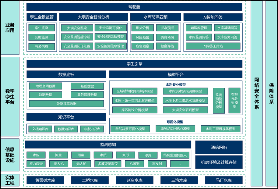 《方案》以黃栗樹等五座水庫為核心對象,進行了前瞻性的信息化總體設計。旨在通過引入先進信息技術,構建覆蓋水庫運行管理全生命周期的智能化體系。該體系以實現(xiàn)對水雨情、工情、供用水、水質及安全狀況等關鍵要素的精準感知、動態(tài)監(jiān)測、智能分析與高效決策為核心目標,全面提升水庫在科學調度、風險防控、管理效能與服務保障方面的綜合能力。主要建設內容涵蓋智慧業(yè)務應用、數(shù)字孿生平臺、信息基礎設施及網(wǎng)絡安全體系,共同構成層次清晰、協(xié)同聯(lián)動、安全可靠的現(xiàn)代化水利信息化總體框架,為區(qū)域水安全與可持續(xù)發(fā)展奠定堅實的數(shù)字基石。