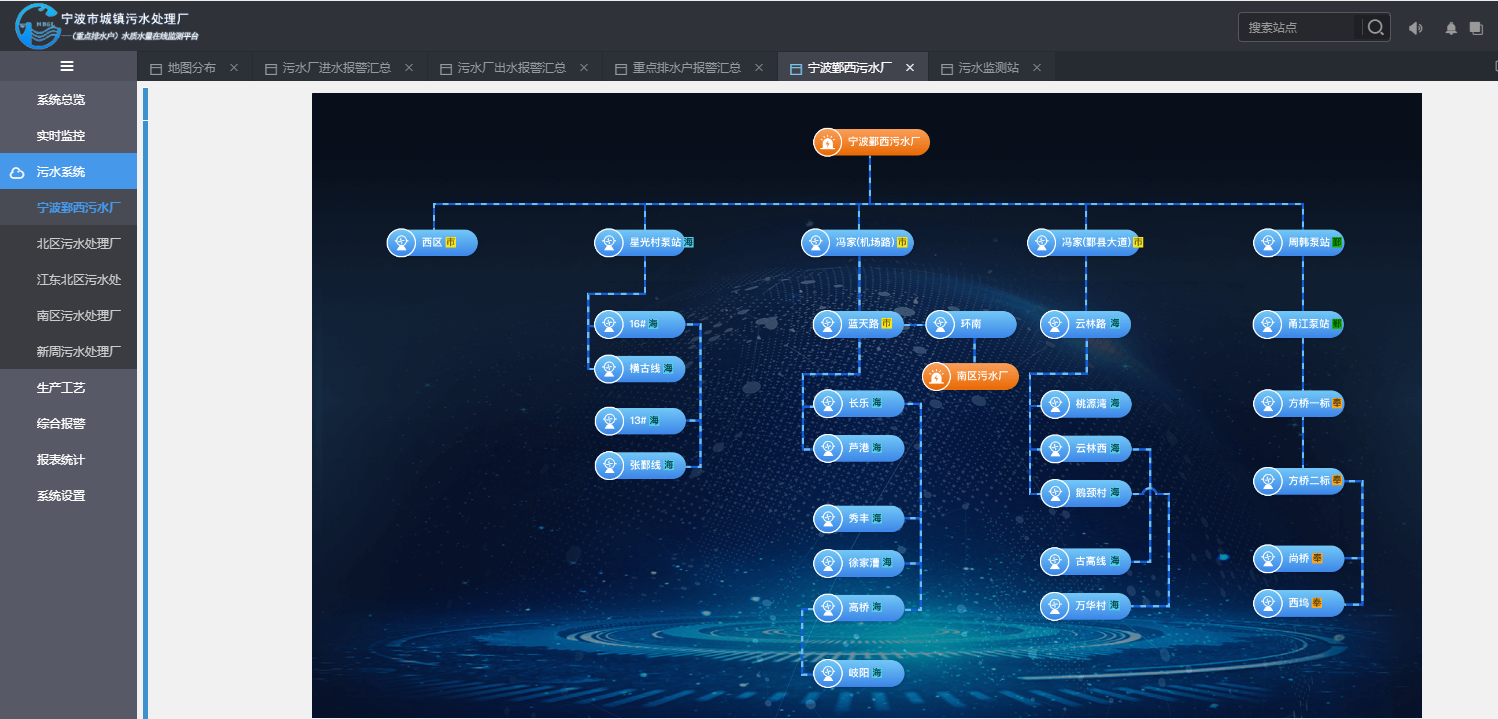 對轄區(qū)范圍內(nèi)的城鎮(zhèn)污水處理廠進行管理,結(jié)合污水管理需求,開發(fā)污水廠站點管理、污水廠進出水報警、各級污水廠實時數(shù)據(jù)監(jiān)控、污水系統(tǒng)統(tǒng)計、生產(chǎn)工藝展示、污水廠巡檢等功能,實現(xiàn)城鎮(zhèn)污水系統(tǒng)的高效在線化管理。