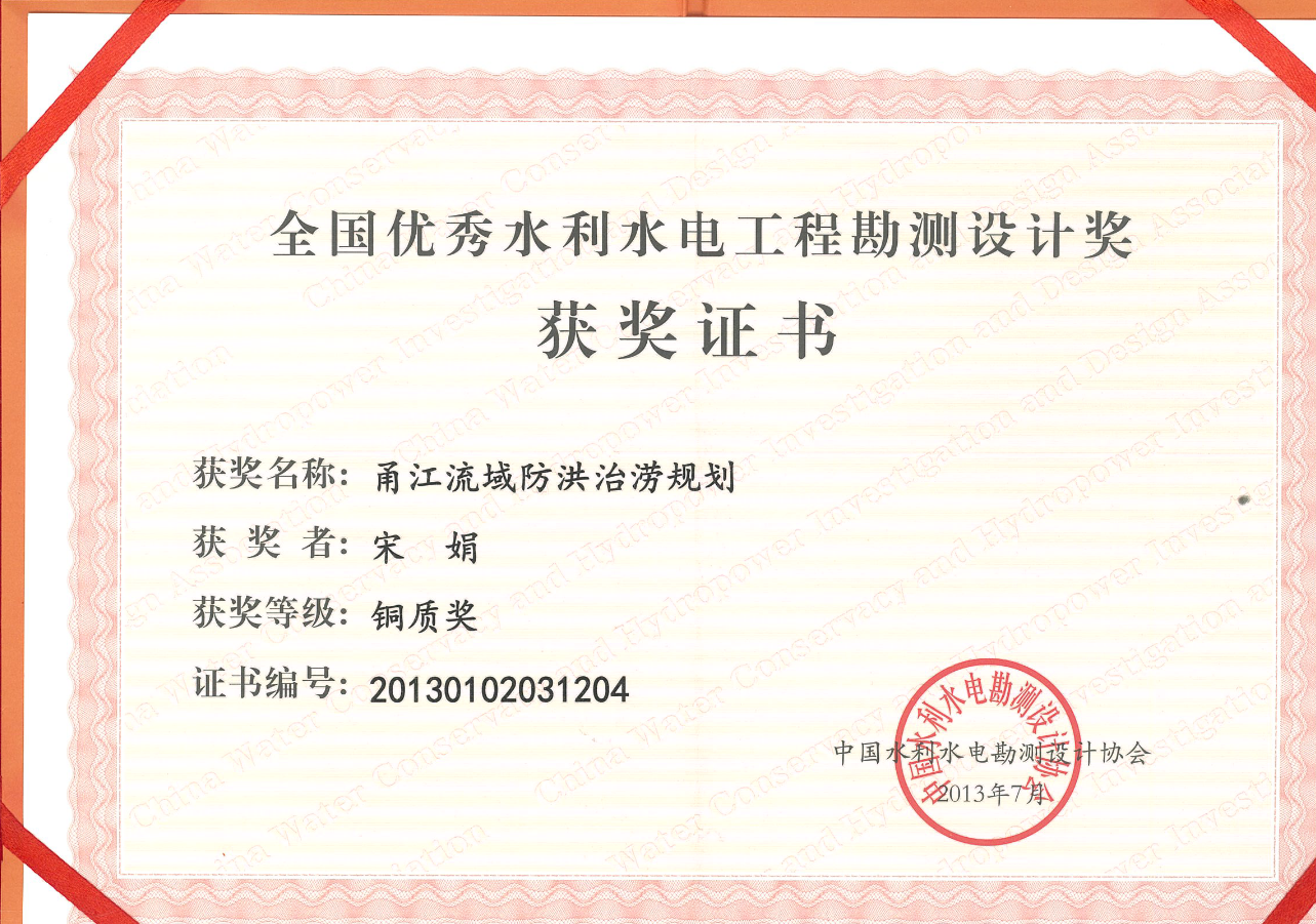 第一屆“中水萬(wàn)源”全國(guó)水土保持與生態(tài)景觀設(shè)計(jì)大賽優(yōu)秀獎(jiǎng)