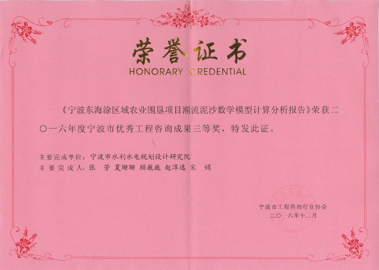 寧波市優(yōu)秀工程咨詢(xún)成果三等獎(jiǎng)