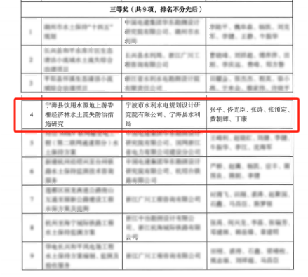 近日,浙江省水土保持學(xué)會(huì)第三屆優(yōu)秀設(shè)計(jì)評(píng)選獲獎(jiǎng)名單出爐,15個(gè)獲獎(jiǎng)工程中,我院成功鎖定一席!此次我院受寧??h水利局委托開(kāi)展實(shí)施的寧??h飲用水源地上游香榧經(jīng)濟(jì)林水土流失防治措施研究榮獲三等獎(jiǎng)。該獎(jiǎng)項(xiàng)由浙江省水土保持學(xué)會(huì)設(shè)立,每?jī)赡暝u(píng)審一次,通過(guò)對(duì)水土保持規(guī)劃設(shè)計(jì)領(lǐng)域中取得優(yōu)異成績(jī)的集體和個(gè)人進(jìn)行表彰,從而推動(dòng)全省水土保持行業(yè)的發(fā)展。