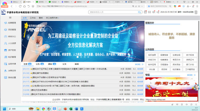 從2002年探索建設流域數字化至今,寧波院業(yè)務的數字化已走過了20多年,2023年,以事業(yè)部制轉型為契機,提出建設以OA辦公系統、業(yè)財一體化系統、知識庫系統為代表的管理工具,在業(yè)務數字化的基礎上,推動企業(yè)管理的數字化轉型。