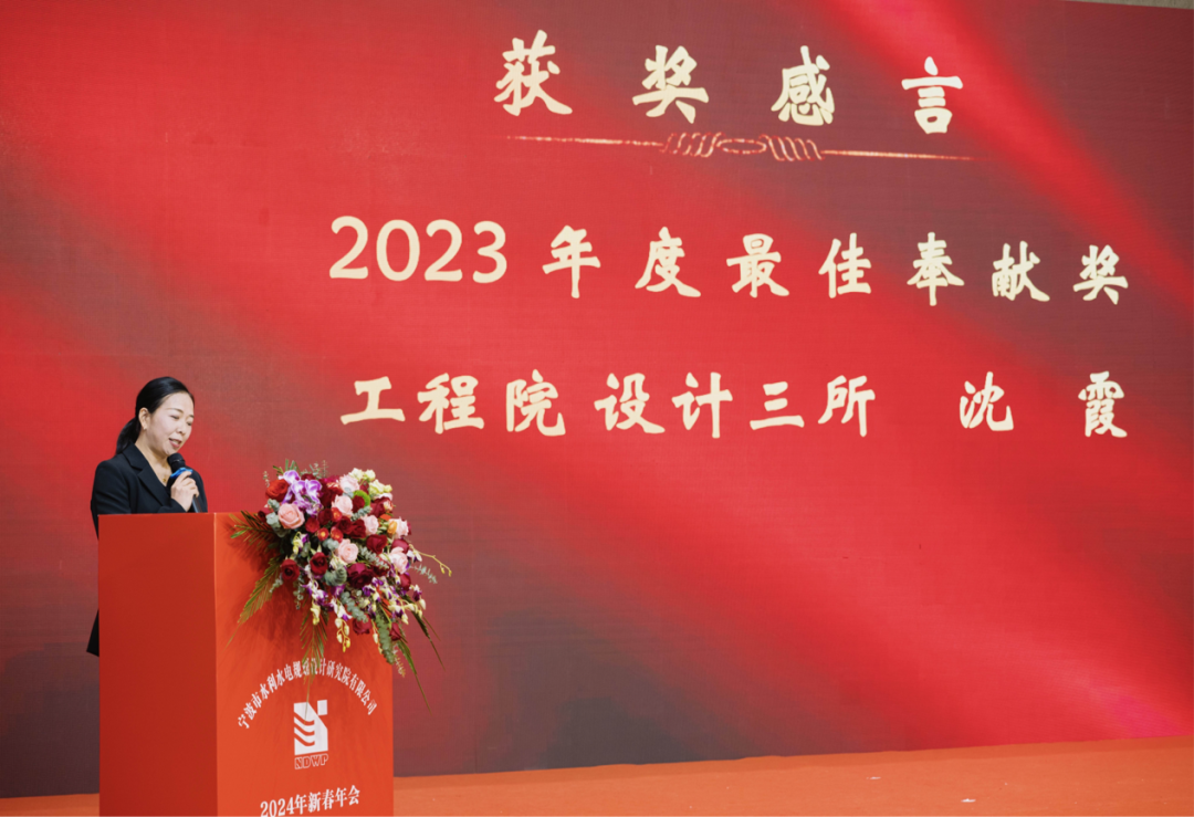 2023年度先進(jìn)工作者獲獎(jiǎng)代表勘察院勘察二所的湯文勇、2023年度最佳奉獻(xiàn)獎(jiǎng)獲獎(jiǎng)?wù)吖こ淘涸O(shè)計(jì)三所的沈霞、2023年度最佳新人獎(jiǎng)獲獎(jiǎng)代表規(guī)劃院規(guī)劃二所的魯經(jīng)宇,先后上臺(tái)發(fā)表獲獎(jiǎng)感言,以真摯的情感、質(zhì)樸的語言和滿滿的憧憬,表達(dá)了自己與企業(yè)共同成長(zhǎng)過程中的勵(lì)志故事和切身感悟,表達(dá)了寧波院中堅(jiān)力量、團(tuán)隊(duì)骨干和新兵后輩的豪情壯志。