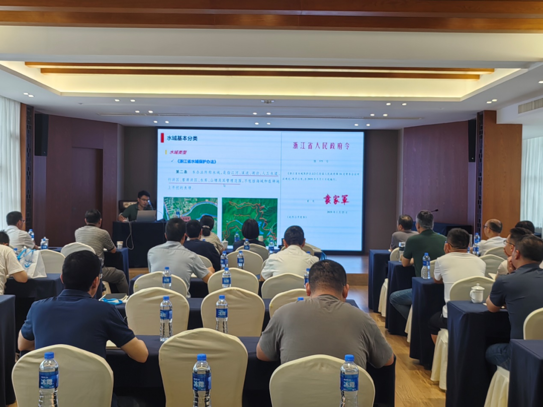 培訓(xùn)現(xiàn)場(chǎng),我院規(guī)劃四所所長(zhǎng)楊益青憑借其扎實(shí)的學(xué)術(shù)功底與豐富的實(shí)踐經(jīng)驗(yàn),生動(dòng)呈現(xiàn)了海曙區(qū)這一歷史與現(xiàn)代交融之地的水文畫卷。他從水域基本分類出發(fā),清晰介紹劃分區(qū)內(nèi)河道、湖泊、水庫(kù)、山塘等各類水域,為參訓(xùn)人員構(gòu)建起海曙區(qū)水系結(jié)構(gòu)基本框架;隨后,依托《海曙區(qū)水域調(diào)查》的研究成果,系統(tǒng)介紹了當(dāng)前水域的分布情況、水域功能等關(guān)鍵信息,并緊扣《海曙區(qū)水域保護(hù)規(guī)劃》,深入淺出地闡述了未來水域的規(guī)劃布局。最后依托我院在該領(lǐng)域的最新技術(shù)和成功案例,結(jié)合水域歷史演變及近期變化,分享我院在水域管理保護(hù)方面的典型辦法和先進(jìn)舉措。